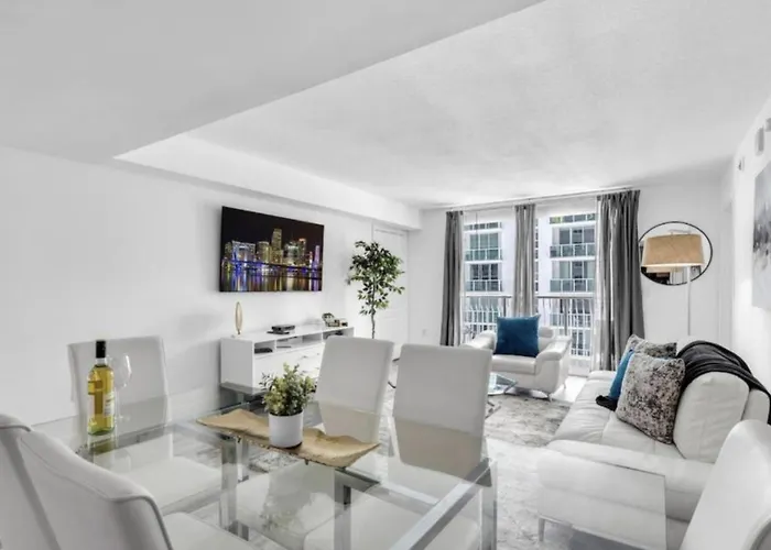 Overlooking the pool, the 93 m² Skyline With Water Views 2 Bedroom Miami apartment is about 25 minutes' walk from the two-story open air shopping center "Bayside Marketplace" in Miami. Also, the presence of a swimming pool guarantees a relaxing stay.